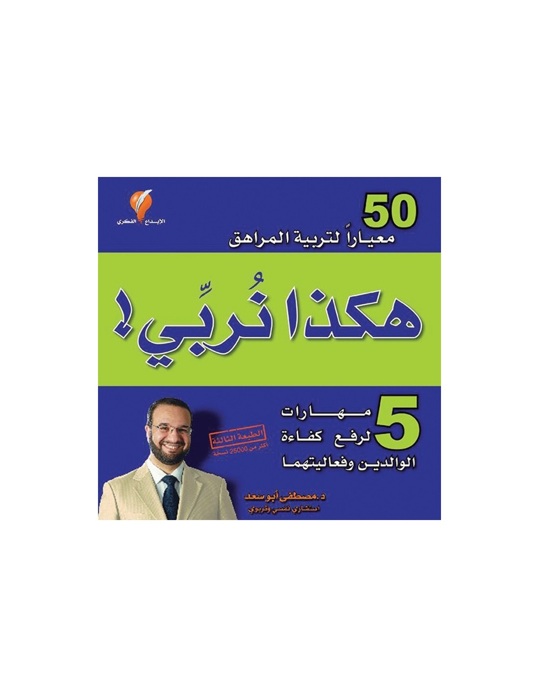 مصطفى أبو سعدهكذا نربي! د. مصطفى أبو السعد إن هدف التربية الأساس هو أن تجعل المتربي إنسانًا ناضجًا حرًا مسؤولًا وأهلًا لاتخاذ القرار.. هذا الكتاب يساعدك على تحقيق ذلك، حيث ستجد فيه 50 معيارًا لبناء أسرة تربوية فعالة، تساعد على تهيئة بيئة داعمة للمراهق : 5 مهارات لرفع كفاءة وفاعلية الوالدين. 1) تعلم فن الإنصات 2) التربية على الاختيار 3) اسع أولا لتفهم، ثم لتكون مفهوماً 4) التكاتف الأسري 5) اللمسة الأبوية